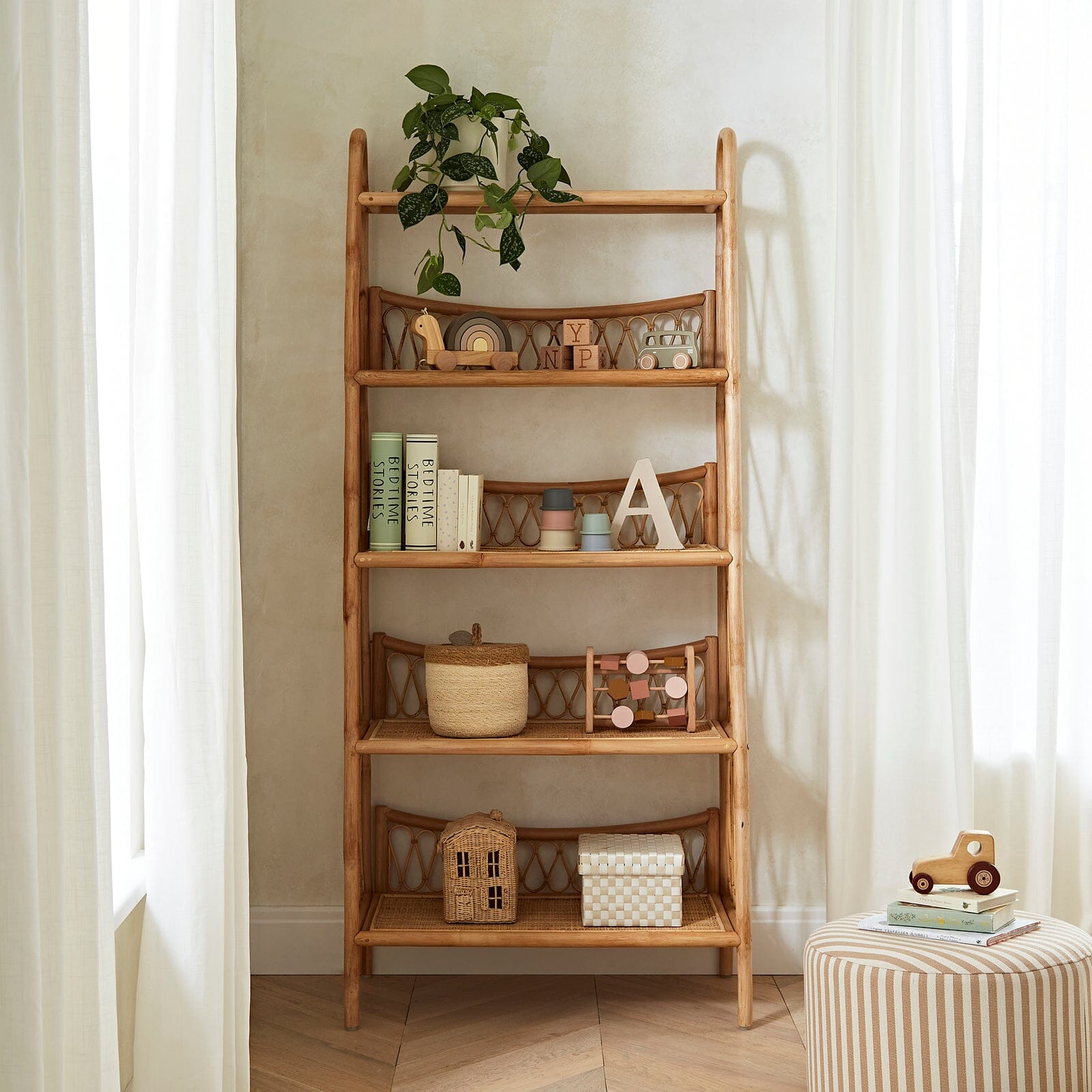 Bring timeless charm and exceptional storage capacity to your nursery or child’s room with the Aria 5-Tier Shelving Unit. This stunning piece is beautifully handcrafted from natural rattan, combining traditional weaving techniques with a contemporary design that complements any décor style.