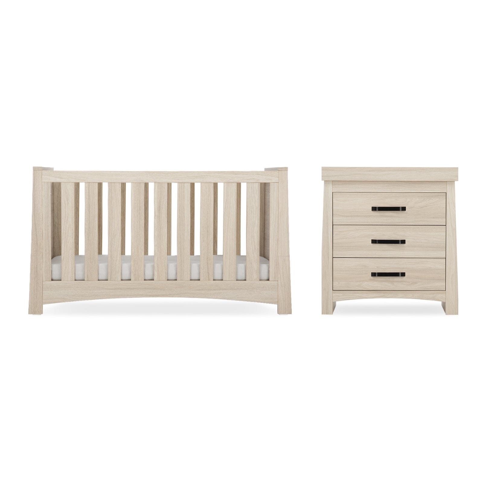 The Isla 2 Piece Nursery Furniture Set includes a cot bed and dresser changer.