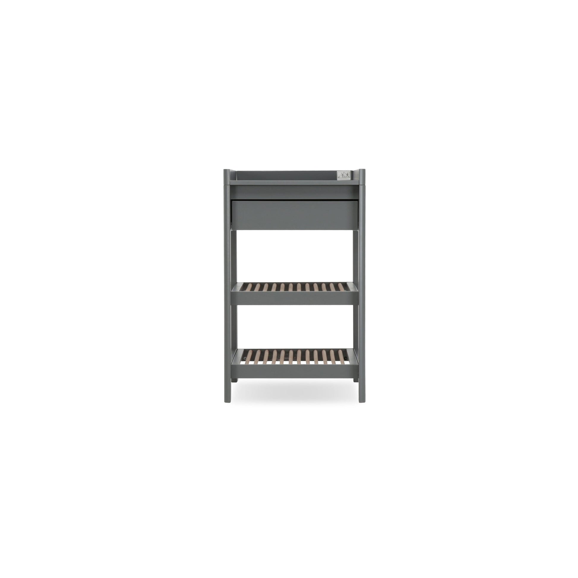 A bespoke and modern space saving design perfectly holds a changing mat with an accessory drawer underneath, ideal for storing essential wipes and balms.